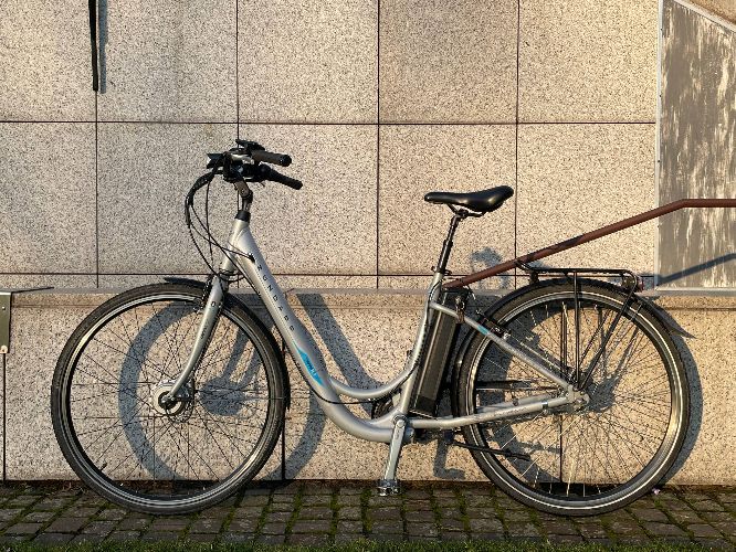Auffällige Merkmale (absteigend nach Wiedererkennbarkeit): 7-Gang Shimano Nexus Nabenschaltung (anstatt der üblichen 3-Gang) Kettenschutz beschädigt und unsauber repariert; hinterer unterer Teil fehlt Ungewöhnliche Metallpedale mit schwarzen Gummielementen Griff der Batterie defekt Großes, nicht originales schwarzes Frontlicht am Lenker (batteriebetrieben, nicht an der Gabel montiert) Hinterer Bremszug am Rahmen festgeklebt (sichtbare Klebespuren unter „Green 2.7“ auf der linken Seite) Nabenschaltung auf der rechten Seite optisch verdeckt Weitere Merkmale: Schwarzer, einfacher Seitenständer Vorder- und Hinterradfelgen unterschiedlich (Rad wurde ersetzt) Laufleistung ca. 18.700 km Funktioniert nur mit eingestecktem Schlüssel |